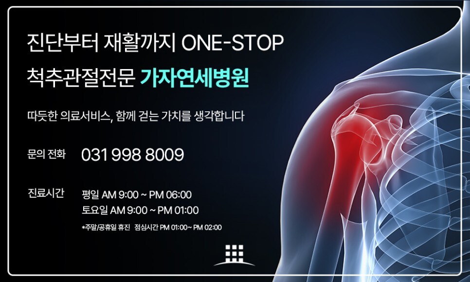 대수롭지 않게 여기며 증상을 방치하게 되면 2차 합병증으로 회전근개파열이 발병할 수 있기 때문에 초기에 치료하는 것이 중요합니다. 앞서 설명드렸던 증상이 나타나거나 김포어깨충돌증후군이 의심스러우면 가자연세병원 김포점에 내원해서 정밀 진단과 치료를 받아보시는 것을 추천드립니다.