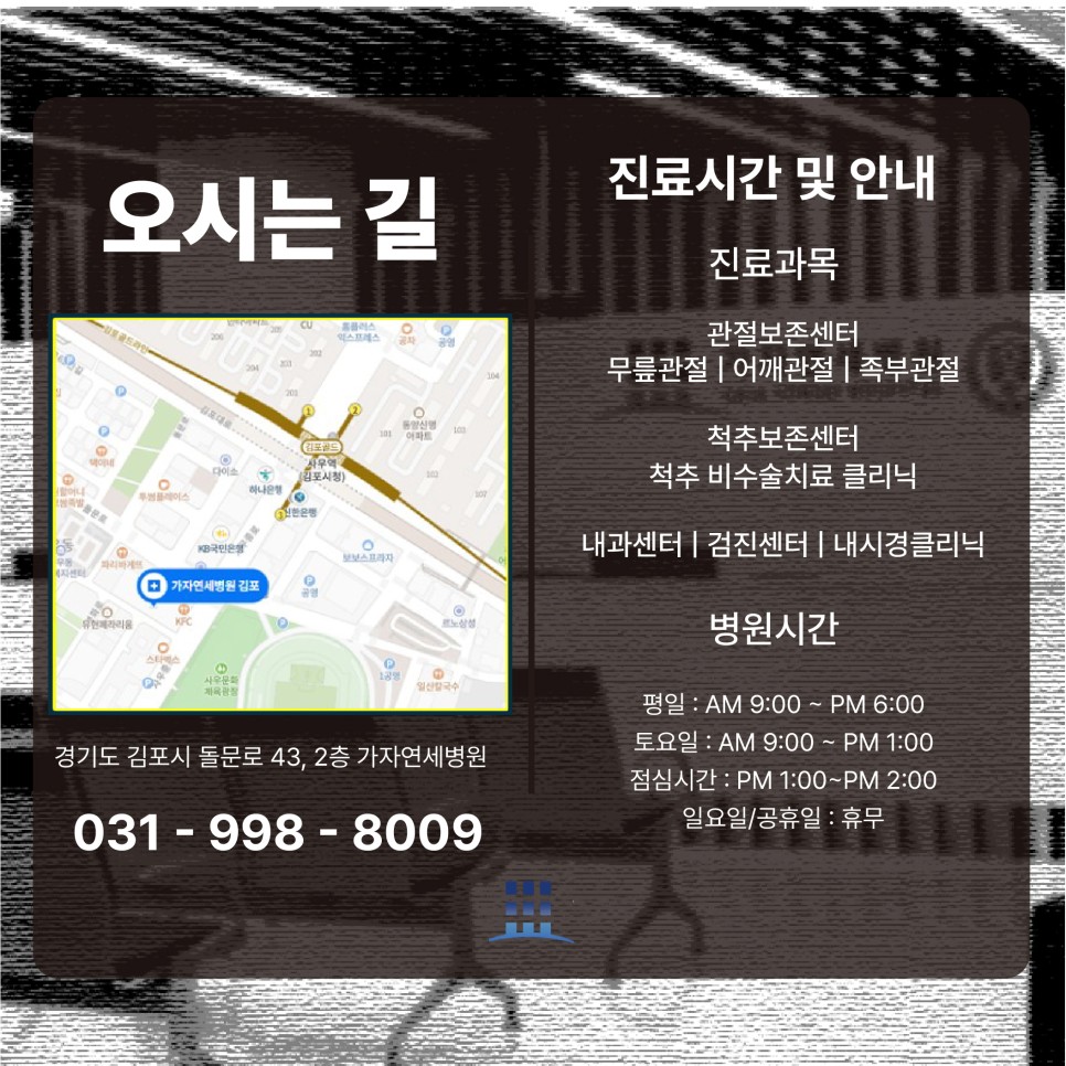 자신의 차진동이 느껴질정도로 강하고 허리디스크가 의심된다면 김포시에서 허리디스크 치료하는 가자연세병원으로 내원하세요. 내원하시면 진찰을 하고 방사선 검사와 MRI검사를 합니다.
