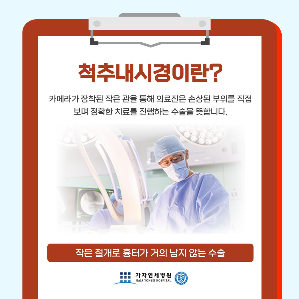 하지만 증상이 심각하거나 비수술적 치료에도 호전되지 않는 경우에는 검단정형외과 김포가자연세병원에서는 척추내시경 수술을 고려할 수 있어요. 척추내시경이란 카메라가 장착된 작은 관을 통해 의료진은 손상된 부위를 직접 보며 정확한 치료를 진행하는 수술을 뜻해요.