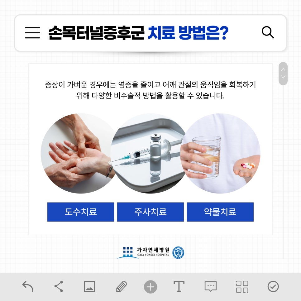 손목터널증후군은 단순한 통증 이상입니다. 방치하면 삶의 질 자체를 낮출 수 있어요. 손끝 저림이 시작되고, 스마트폰을 오래 들기 힘들거나 물건을 자주 놓치는 일이 생긴다면, 무시하지 말고 방화역정형외과 김포가자연세병원처럼 통증의 원인을 정확히 진단할 수 있는 병원을 찾아보세요.