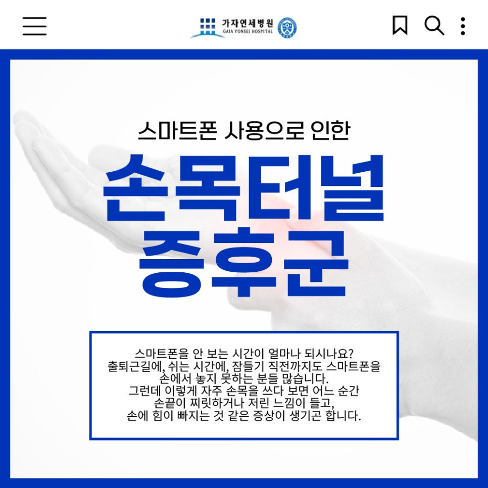 요즘 하루 중 스마트폰을 안 보는 시간이 얼마나 되시나요? 출퇴근길에, 쉬는 시간에, 잠들기 직전까지도 스마트폰을 손에서 놓지 못하는 분들 많으시죠. 그런데 이렇게 자주 손목을 쓰다 보면 어느 순간 손끝이 찌릿하거나 저린 느낌이 들고, 손에 힘이 빠지는 것 같은 증상이 생기곤 합니다.