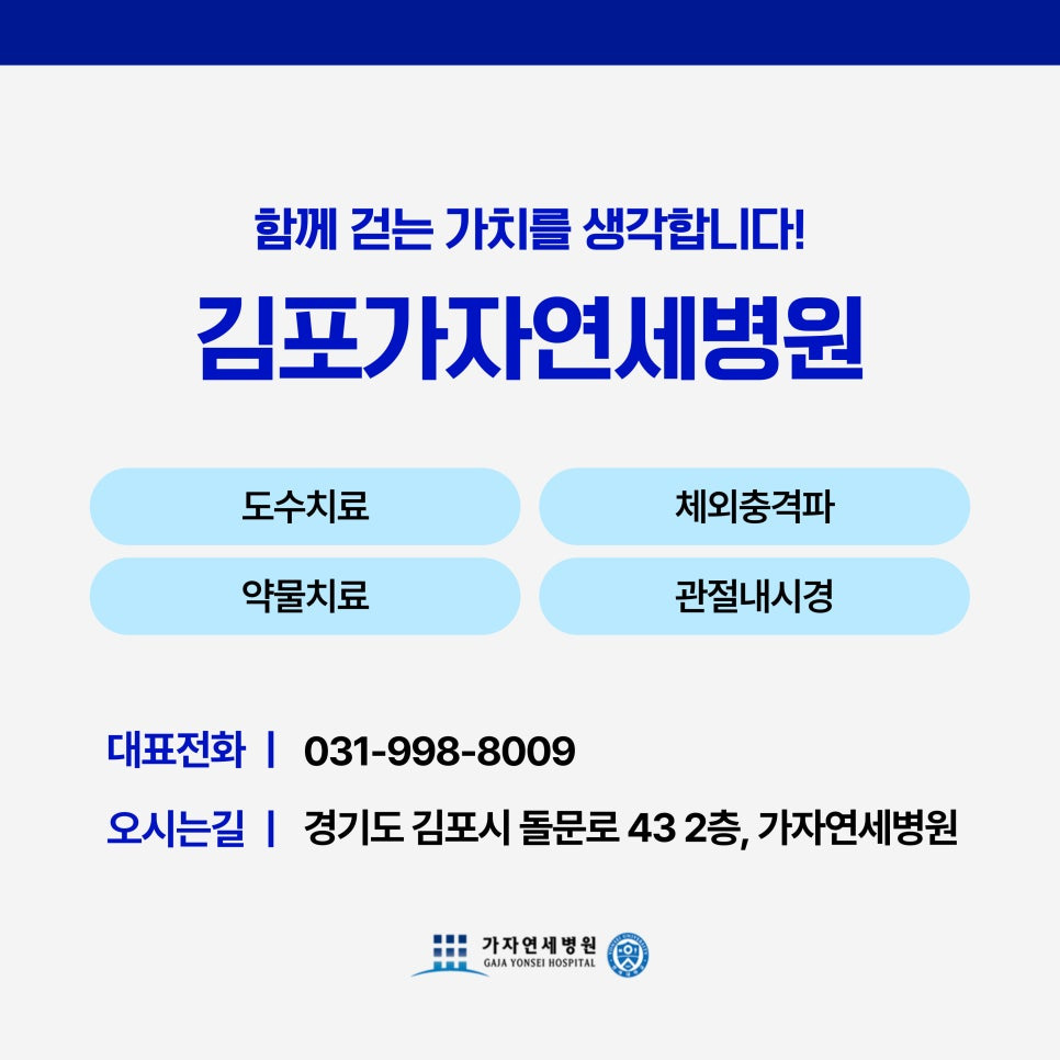 따라서 고관절 부위의 불편감이나 걸음걸이의 변화가 느껴진다면 즉시 정형외과 진료를 받아 정확한 원인을 확인하는 것이 필요합니다. 조기에 발견하면 약물치료, 물리치료, 도수치료 등 비수술적 방법으로도 충분히 증상 조절과 진행 억제가 가능하기 때문에, 환자에게 큰 부담을 줄일 수 있습니다. 또한 도수치료를 포함한 재활치료는 단순히 통증 완화를 넘어 고관절의 기능을 보존하고 일상으로의 복귀를 앞당기는 데 중요한 역할을 합니다.
