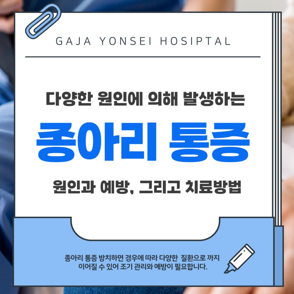 일상 속에서 많은 사람들이 한 번쯤 겪는 증상 중 하나가 바로 종아리통증입니다. 단순히 ‘쥐가 났다’라고 생각하고 방치하는 경우도 있지만, 사실 종아리에서 발생하는 통증은 단순 피로 외에도 다양한 원인에 의해 나타날 수 있습니다. 걷거나 뛸 때, 장시간 서 있거나 앉아 있을 때, 혹은 운동 중에도 통증이 발생한다면 그저 근육 피로가 아니라 근육·힘줄·혈관·신경 등 여러 구조적 문제일 수 있습니다.