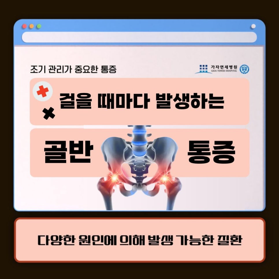 골반은 상체와 하체를 연결하는 중심 구조로, 보행 시 체중을 지탱하고 균형을 잡는 핵심적인 역할을 하는 부위에요. 따라서 골반 주변 근육이나 관절, 인대에 이상이 생기면 걷는 동안 통증이 나타나 일상생활에 큰 불편을 줄 수 있어요.