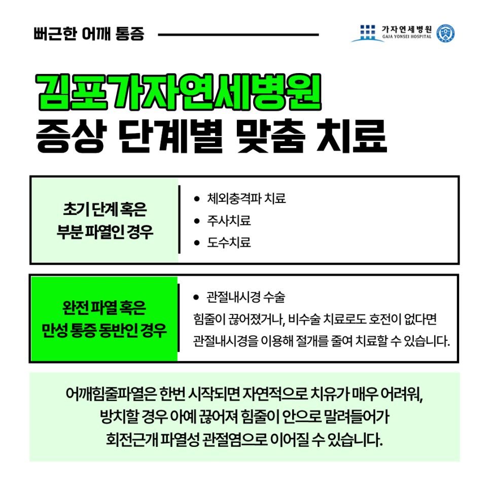 김포가자연세병원은 단순히 통증만을 지우는 것이 아니라, 환자분이 다시 좋아하는 운동을 즐기고 편안하게 잠들 수 있는 일상을 되찾아드리는 것을 목표로 합니다. 풍무동, 고촌, 구래동 등 김포 지역 주민들의 어깨 건강을 책임지는 주치의로서, 과잉 진료 없이 환자의 상태에 가장 적합한 정직한 치료만을 제안하겠습니다. 추가적인 문의가 있으시다면 내원하여 상담받아보시기 바랍니다.