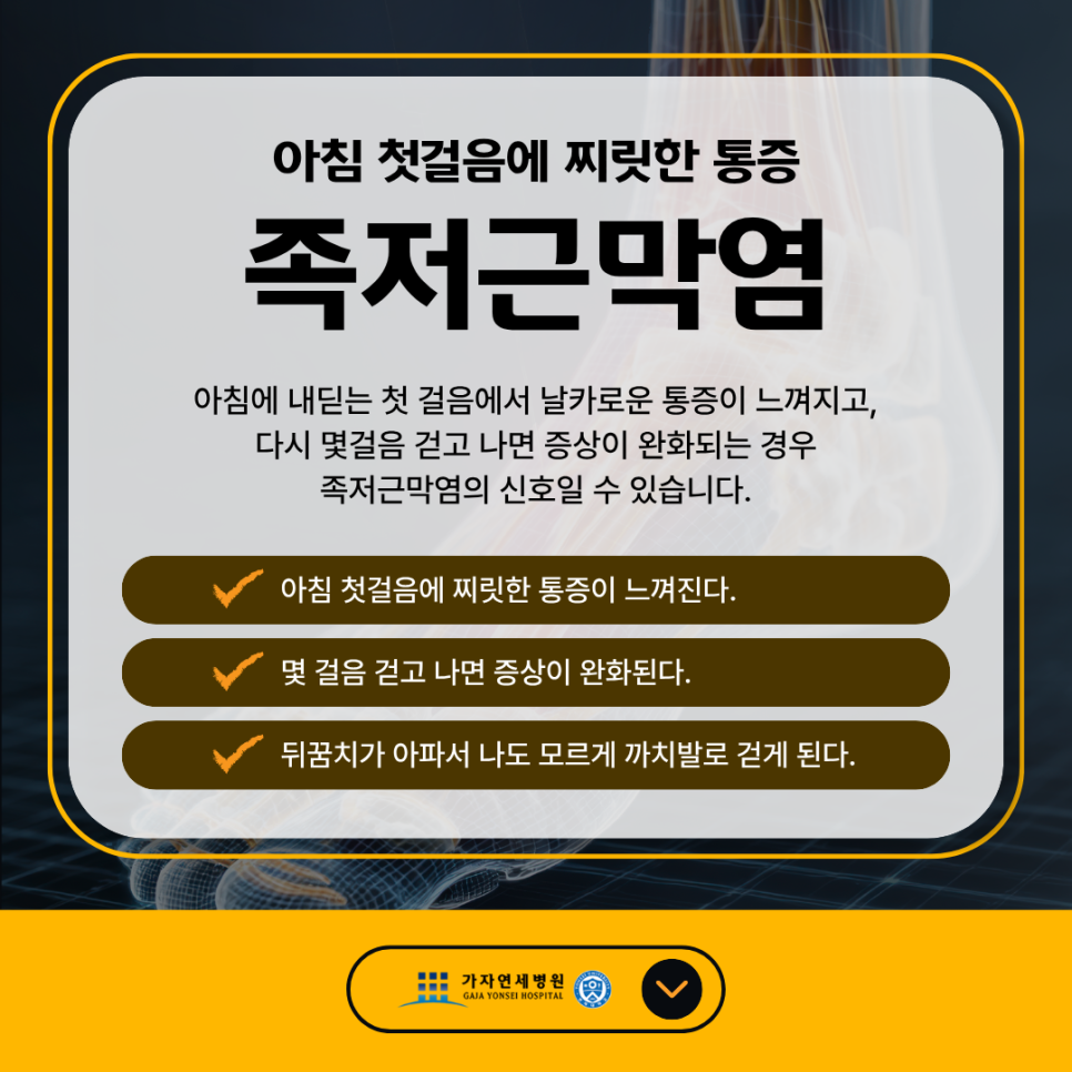 우리는 일상생활을 하면서 발바닥의 존재를 크게 의식하지 않고 살아갑니다. 하지만 아침에 일어나 침대에서 내려와 첫발을 내딛는 그 짧은 순간, 마치 날카로운 칼로 베이는 듯하거나 송곳으로 찌르는 듯한 강렬한 통증이 발뒤꿈치를 엄습한다면 상황은 달라집니다.