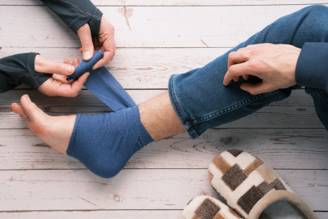발뒤꿈치 안쪽 중심 자리에 앉아 한쪽 발을 반대쪽 무릎 위에 올린 뒤, 발바닥을 손으로 꾹꾹 눌러보시기 바랍니다. 족저근막염 환자의 약 80% 이상이 발뒤꿈치 뼈의 바닥면 중에서도 약간 안쪽 부위를 눌렀을 때 비명이 나올 정도의 강한 압통을 느끼시는데요, 발가락을 발등 쪽으로 한껏 젖힌 상태에서 이 부위를 누르면 근막이 팽팽해지면서 통증이 더욱 선명하게 나타난답니다.