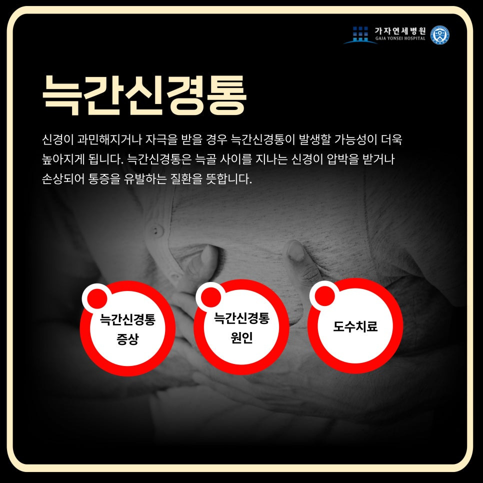 환절기가 되면 기온 변화와 습도의 급격한 변동으로 인해 신체가 적응하는 데 어려움을 겪게 되는데요. 이러한 변화는 면역력을 저하시킬 뿐만 아니라 근육과 신경에도 영향을 미쳐 통증을 유발할 수 있고 특히, 현대인의 생활 방식은 장시간 앉아 있거나 반복적인 자세를 유지하는 경우가 많아, 이러한 환경적 요인과 결합하여 근골격계 건강에 악영향을 미칠 수 있어요. 신경이 과민해지거나 자극을 받을 경우 늑간신경통이 발생할 가능성이 더욱 높아지게 돼요. 늑간신경통은 늑골 사이를 지나는 신경이 압박을 받거나 손상되어 통증을 유발하는 질환으로, 이를 예방하고 효과적으로 관리하기 위해 증상과 치료법을 사전에 숙지하는 것이 중요하죠. 늑간신경통 주요 증상과 원인 1. 가슴이나 갈비뼈 주변에서 찌르는 듯한 통증이 발생..