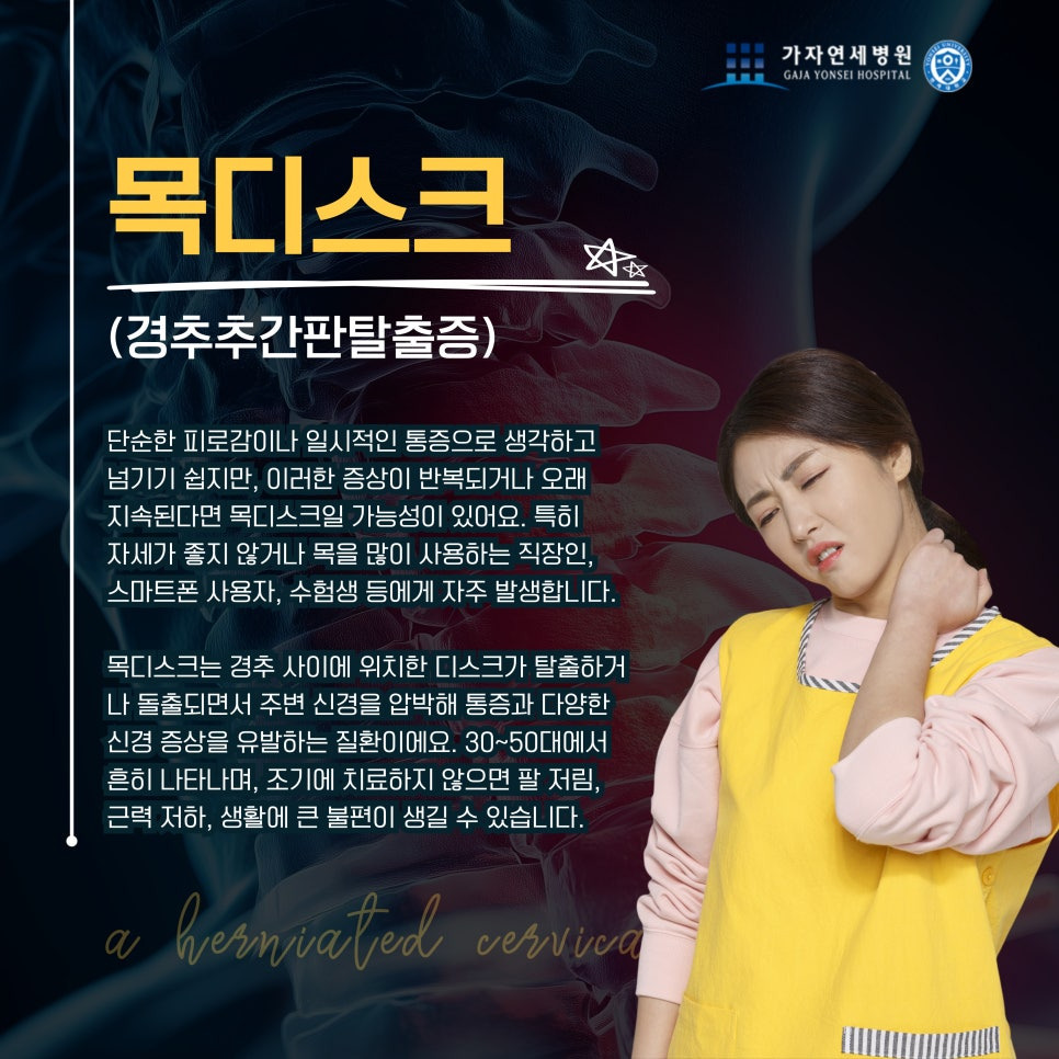 디스크 질환은 조기에 발견 시 비수술 치료와 생활 습관 관리를 권하는 경우가 많습니다. 이는 척추의 상태를 원래대로 되돌리기보다, 더 이상 질환이 진행되지 않도록 하고 눈에 띄는 불편한 증상을 줄이기 위해서입니다. 특히 2~30대 디스크 환자에게는 질환의 지속적인 관리가 더욱 중시되는데요, 이는 디스크 질환 자체가 완치가 어렵고 재발은 쉽기 때문입니다. ‘디스크 질환’이 무엇인가요?일산신경외과 김포가자연세병원은 목과 허리, 척추 등에 발생하는 디스크 질환을 정밀하게 진단하고 비수술 우선 치료를 진행하고 있습니다. ‘디스크 질환’은 질환명으로 알려져 있지만, 좀 더 깊게 들어가보면 사실 단어의 뜻은 신체의 부위를 의미합니다. 인체의 정상적인 만곡을 따라 수직으로 이어진 척추는 한 개의 ..